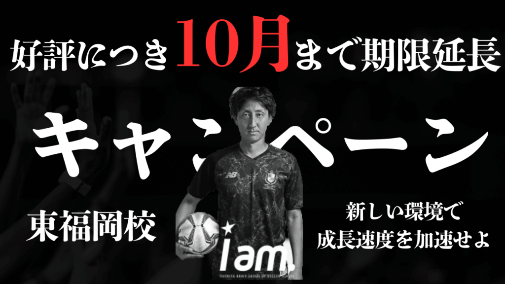 9月に実施した〝期間限定″のキャンペーン〝大好評″につき10月まで〝期間″を延長して実施致します。 少しでもiam.サッカースクールに興味を持った方 まずは無料体験で〝ホンモノ″のスクールを体感せよ👍 & … 続きを読む 【東福岡校】お得なキャンペーンのお知らせ